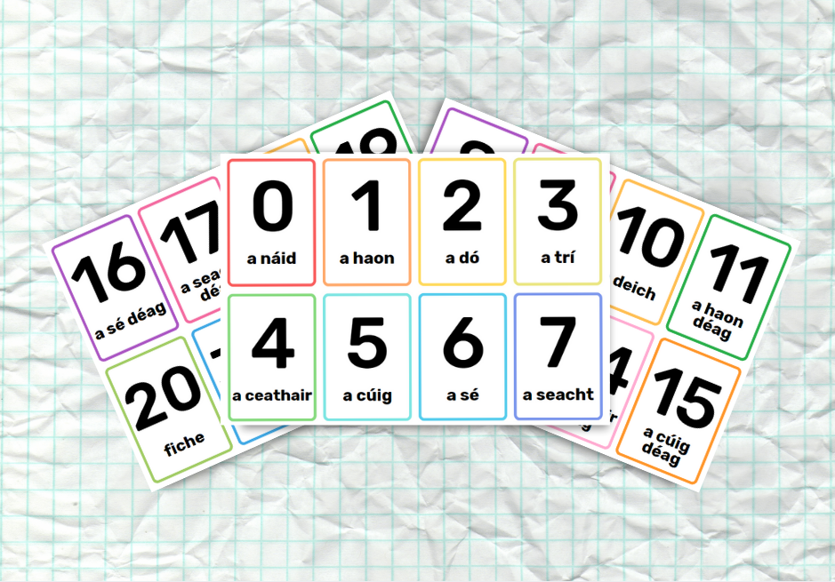 Seo spléach-chártaí atá feiliúnach do pháistí agus do dhaoine fásta ar aon. Is féidir iad a phriontáil sa bhaile. Here are flashcards that all ages can find useful for getting started learning Irish numbers. Íoslódáil thíos iad. Download them below. spleach-chartai-uimhreacha-1Download Share this:Tweet Click to share on WhatsApp (Opens in new window) WhatsApp Click to email a link to a friend (Opens in new window) Email Like Loading... Related Published by Siobhán Ní Mhaoildhia Sprioc: borradh a chur faoi líon na gcainteoirí laethúla líofa. Mission: more fluent daily Irish speakers. View all posts by Siobhán Ní Mhaoildhia